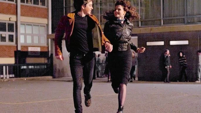 Conor, 15, is taken out of his posh Jesuit school when his parents hit hard times, and sent to the local Christian Brothers on Synge Street. It’s a rough establishment, and he immediately attracts the attentions of resident schoolyard bully Barry (Ian Kenny) and staffroom bully Brother Baxter (Don Wycherley). He is drawn to a pretty older girl Raphina, 16, played by Lucy Boynton styled to look like Pat Benatar circa 1983, who hangs around posing as a model on the steps opposite the school. He tries to impress her by claiming to be a singer, and then has to speedily recruit a band.